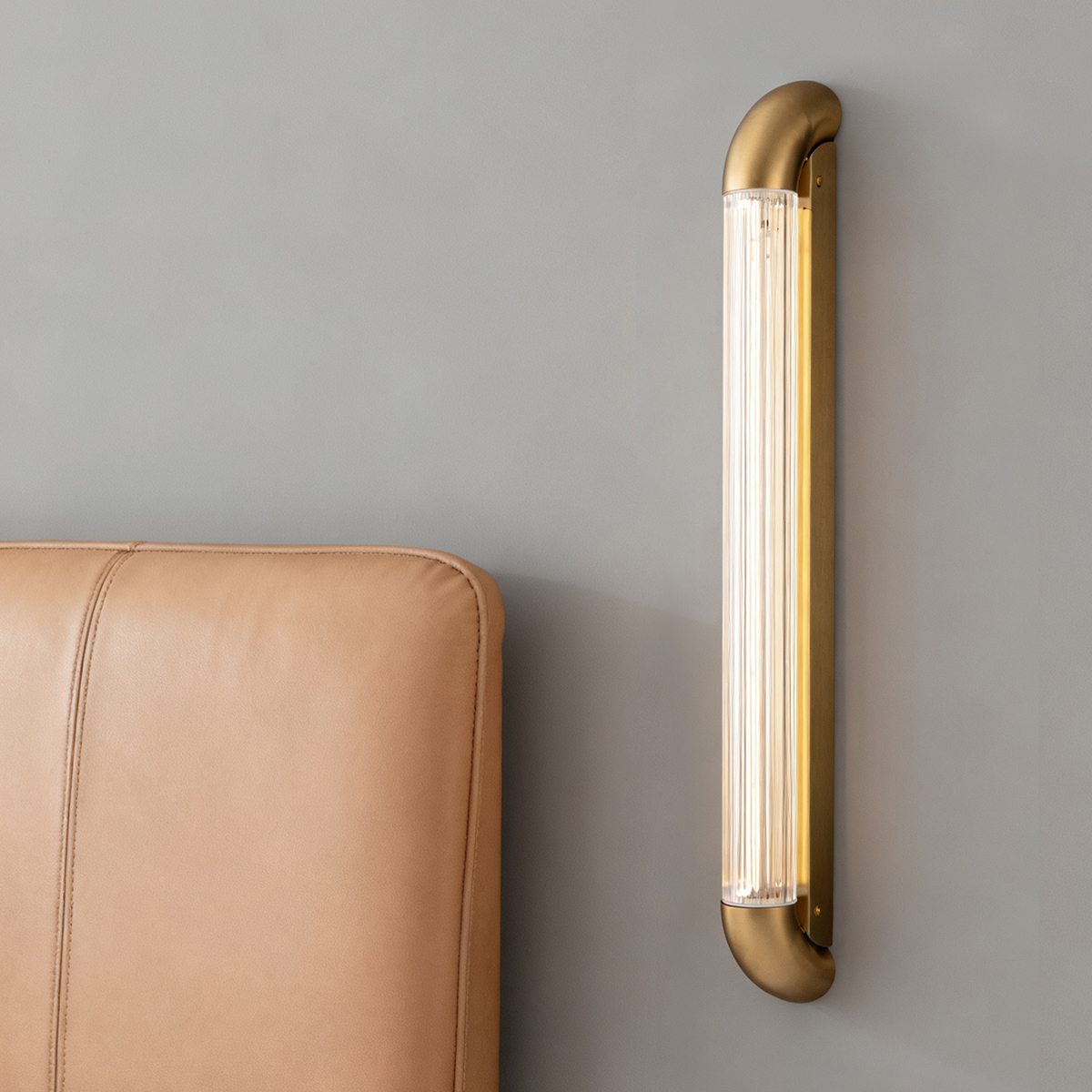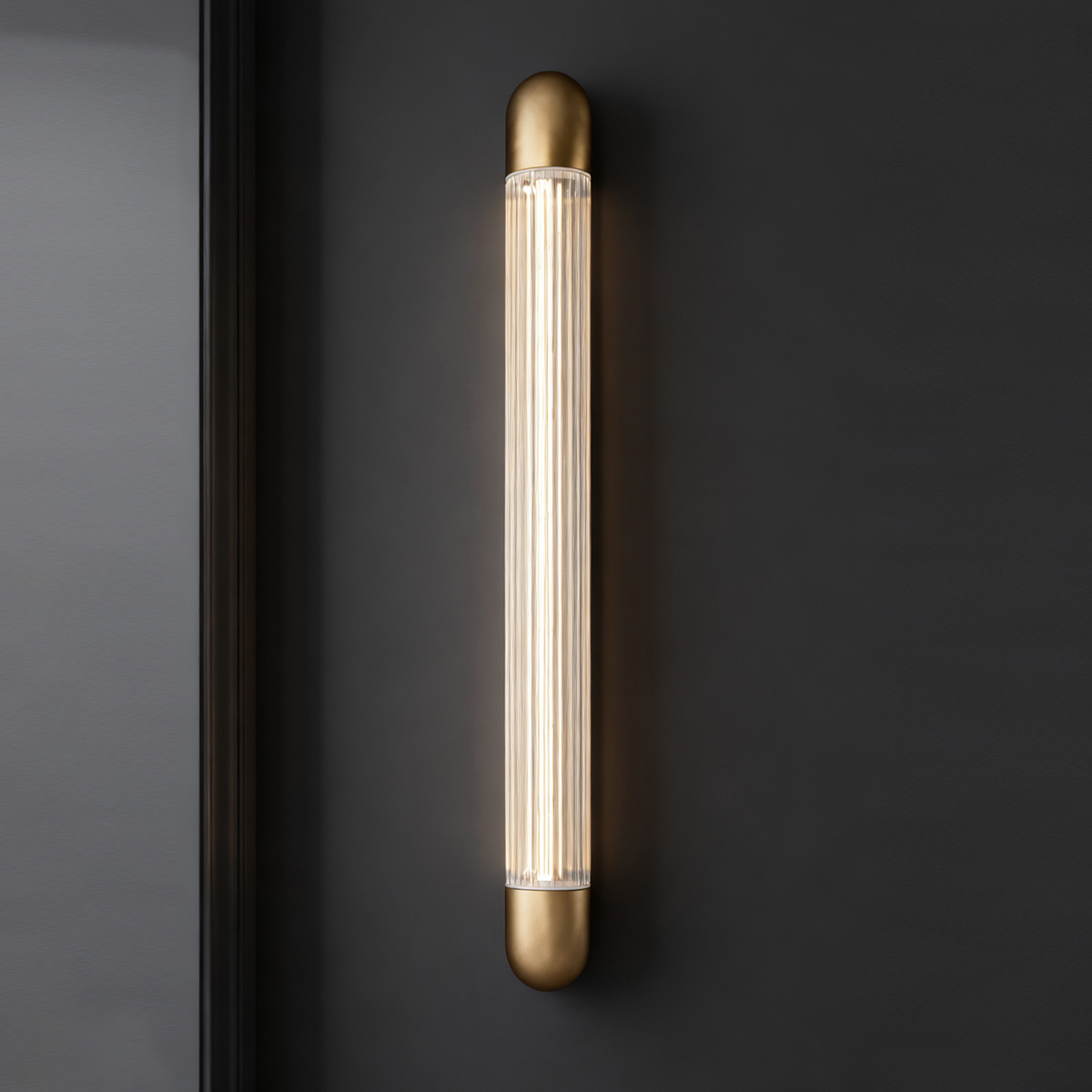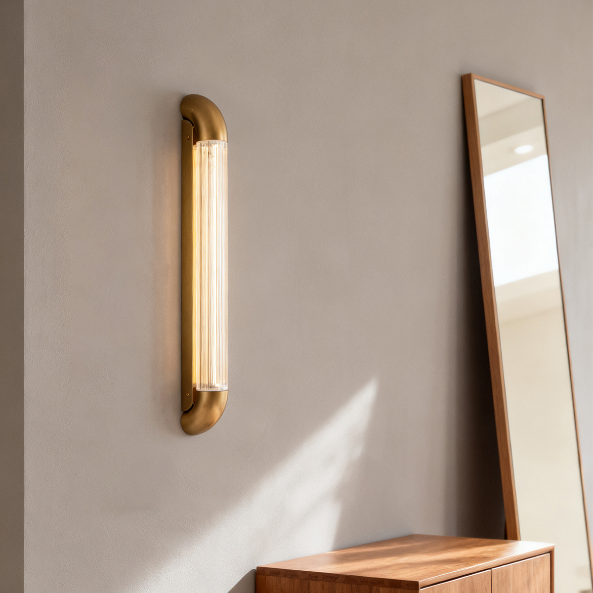 Enhance your interior spaces with our premium copper finish wall light. Crafted from high-quality stainless steel and transparent glass with vertical stripe patterns, this elegant lighting solution provides warm, ambient illumination perfect for various decorative settings.