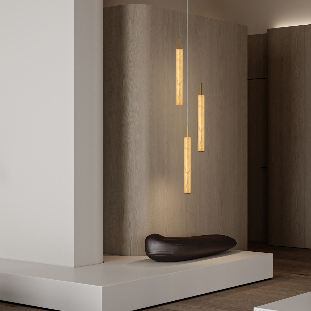 Available in three sizes: 30cm (11.8″), 40cm (15.7″), and 50cm (19.7″) lengths. All versions feature a 6cm (2.36″) diameter marble cylinder and come with integrated warm LED lighting.