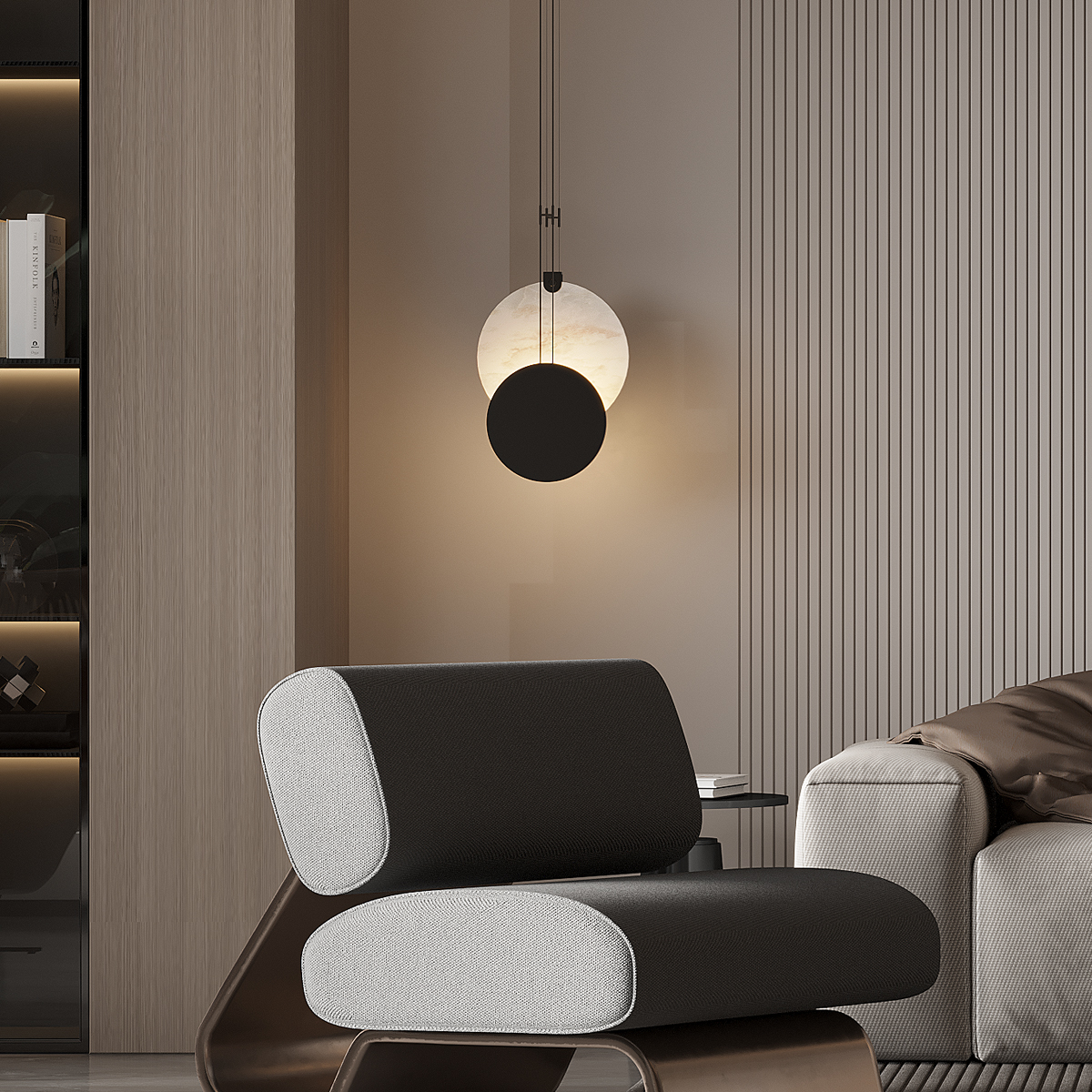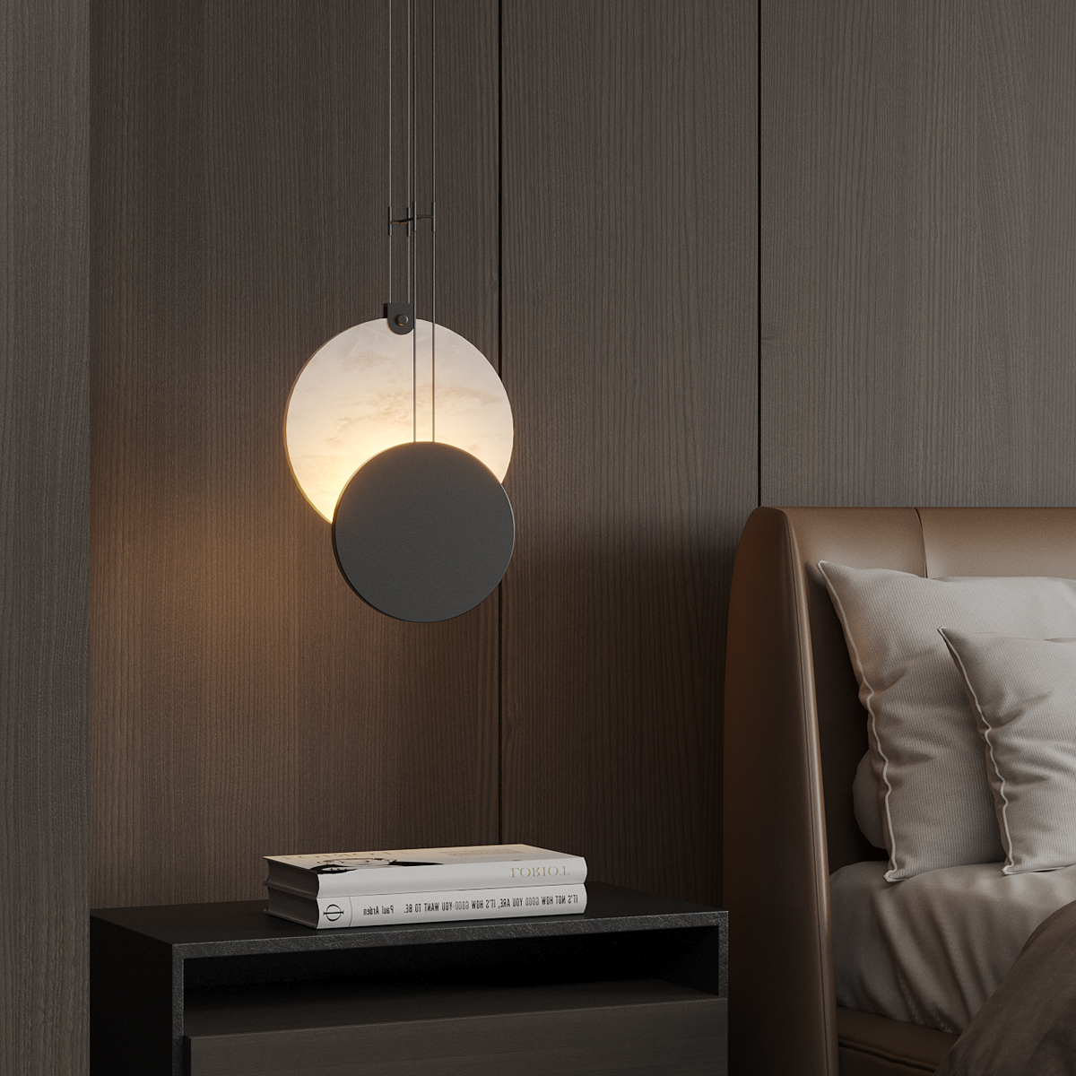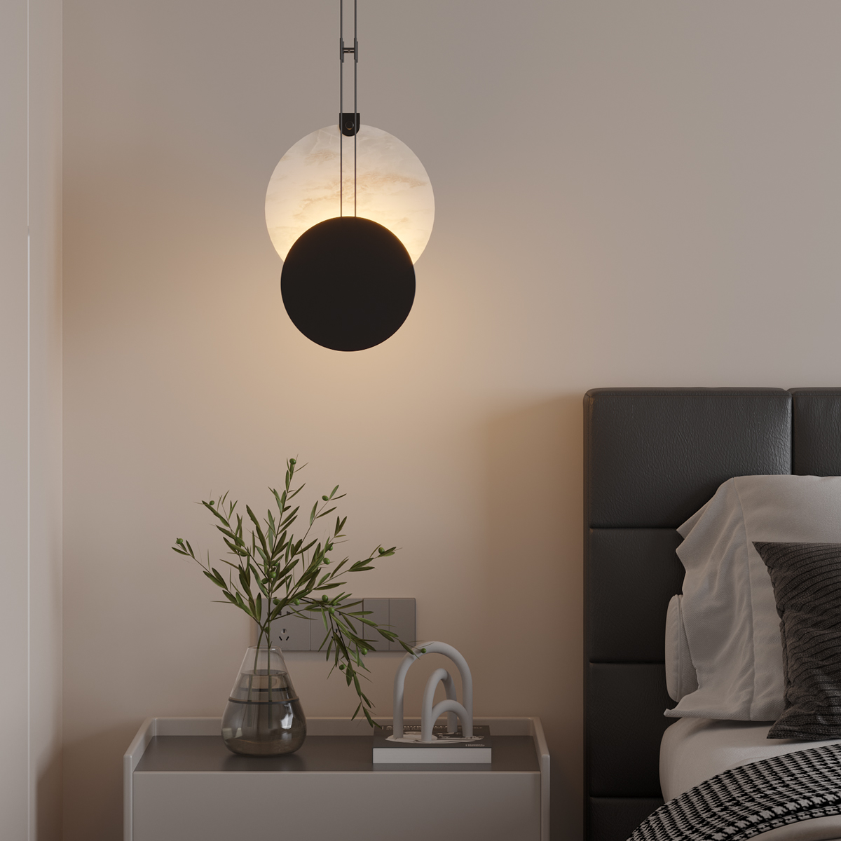 Modern Black Iron & Marble Pendant Light – Adjustable Hanging Lamp for Living Room, Bedroom & Decorative Spaces